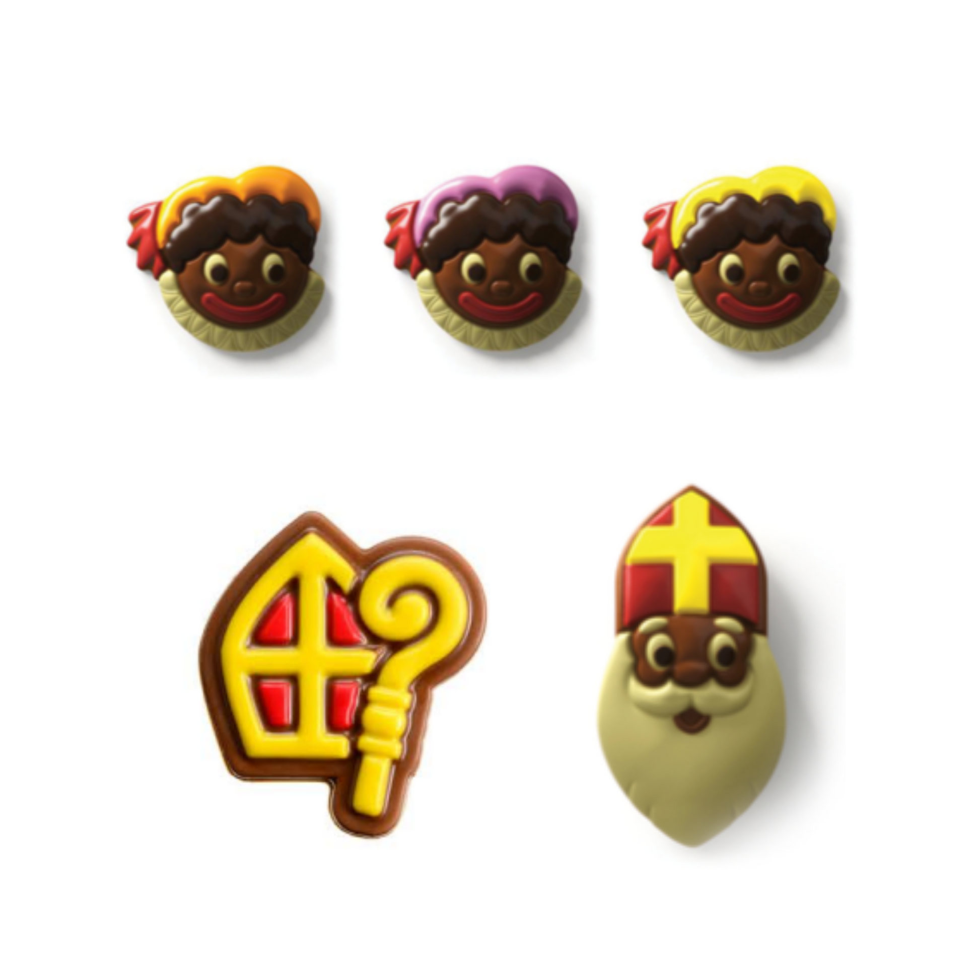 Zakje gevuld met gekleurde chocolaatjes, mengeling van verschillende soorten melk chocolade door elkaar.